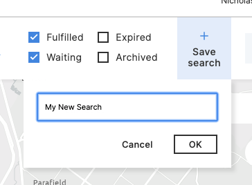A Saved Search is a collection of search filter settings and a map extent. You can use saved searches to quickly jump the map to a certain area and show only the enquiries relevant to your current task.