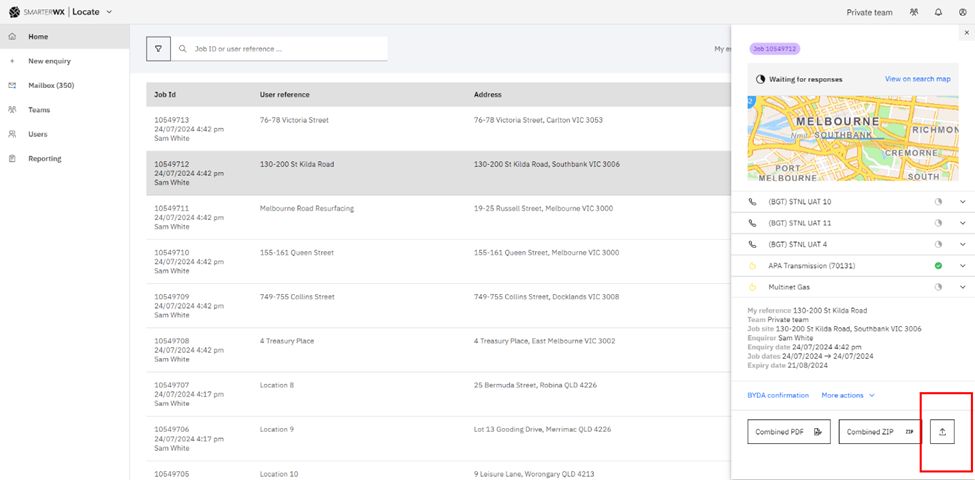 - Open the SmarterWX Locate application and navigate to the enquiry.